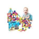 - Contenido:Incluye 64 piezas magnéticas, como barras y bolas, en colores vibrantes como verde, rosa, celeste y amarillo.