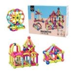 set de construcción con barras magnéticas y bolas, diseñado para niños mayores de 3 años.
