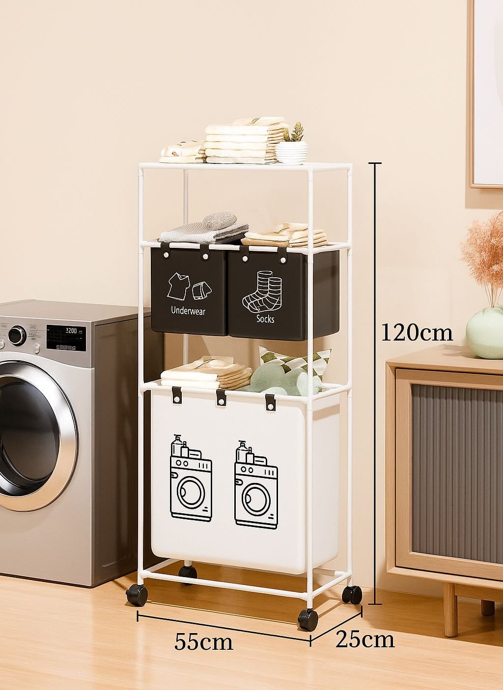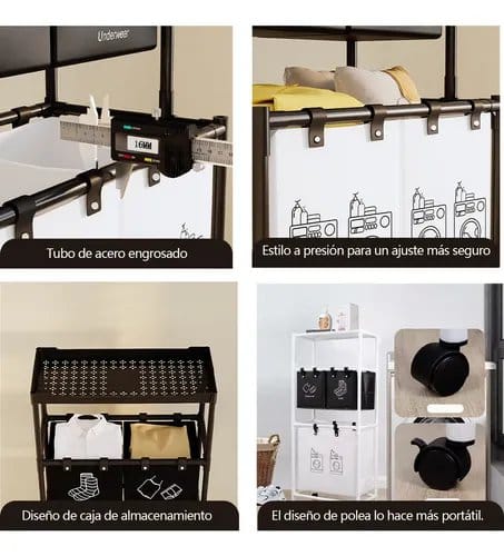 • *Característica:* Cada nivel está equipado con bolsas individuales para facilitar la separación de la ropa