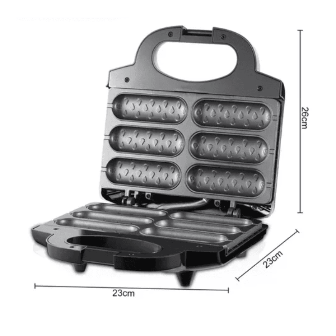 - Es un electrodoméstico compacto y antiadherente diseñado para preparar fácilmente corn dogs en casa.