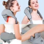 Diseño de correa de hombro ajustable: el diseño mejorado de la hebilla trasera del masaje térmico de espalda y cuello libera tus manos durante el uso. Ya sea que trabaje en su escritorio o se relaje en casa, puede disfrutar de un masaje relajante que pesa solo 2.2 libras sin restringir o cargar sus hombros. Además, la posición y la intensidad del masaje se pueden ajustar tirando a mano.