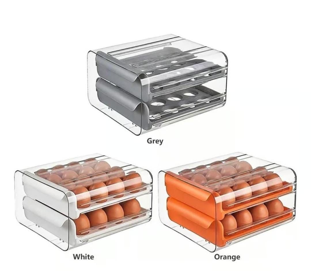 Gran capacidad: nuestras bandejas de doble capa tienen forma de cajón que puede puede contener 32 huevos a la vez, y cada capa está colocada de manera que los huevos no se resbalen ni se dañen